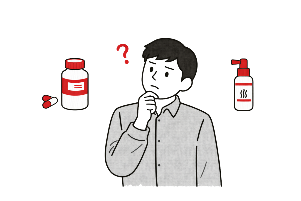 治療薬の選択だけでなく、外用薬との併用や生活習慣の見直しなど、複数のアプローチを組み合わせることで、より高い効果が期待できる場合もあります。大切なのは、「どの薬が有名か」ではなく、「自分の状態に合っているか」という視点です。